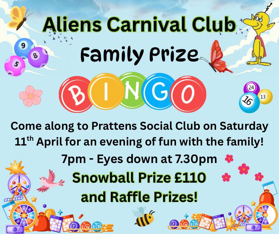 Family Prize Bingo – Our monthly bingo nights have great prizes and a raffle on the night. Our next dates are 11th April, 2nd May and 6th June at Prattens Social Club, with eyes down at 7.30pm – fun for all the family!