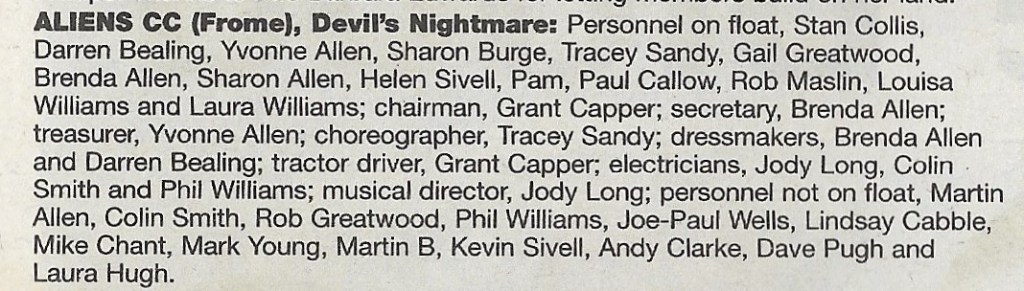 Who’s Who in Aliens CC from the ‘Bridgwater Mercury’, published 9th November 2004