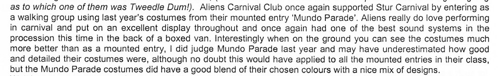 Comment from the ‘South West Carnival Newsletter’, published September 2009
