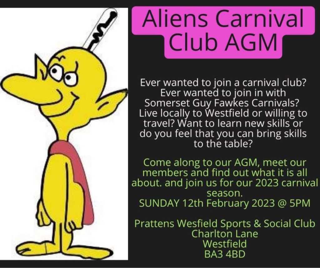 Bingo and Quizzes – Dates for the Diary Jan 23, 2023Jan 24, 2023 alienscarnivalclub All events start at 7.30pm and are held at Prattens Social Club, Westfield, BA3 4BD Come along and say hello!